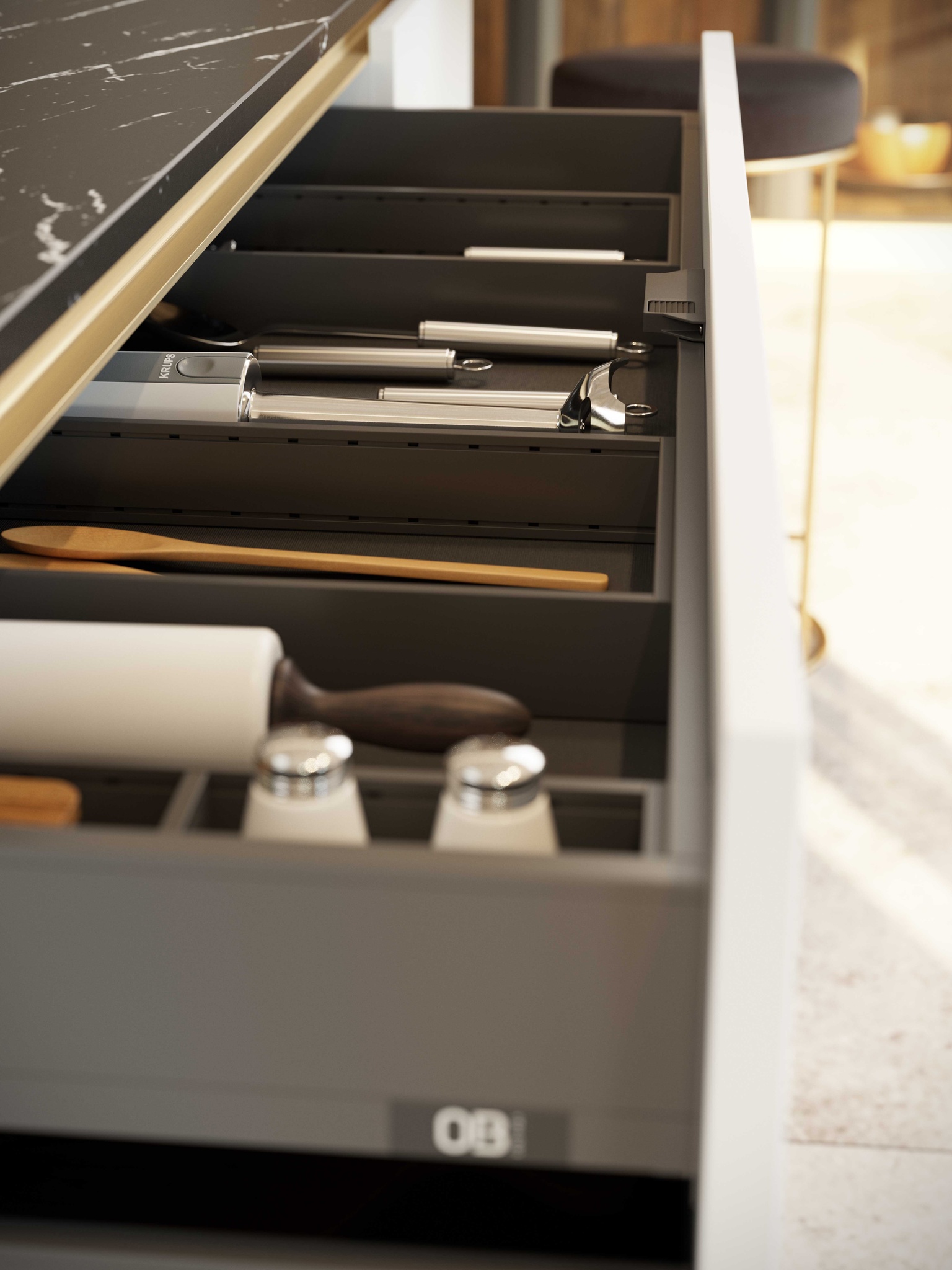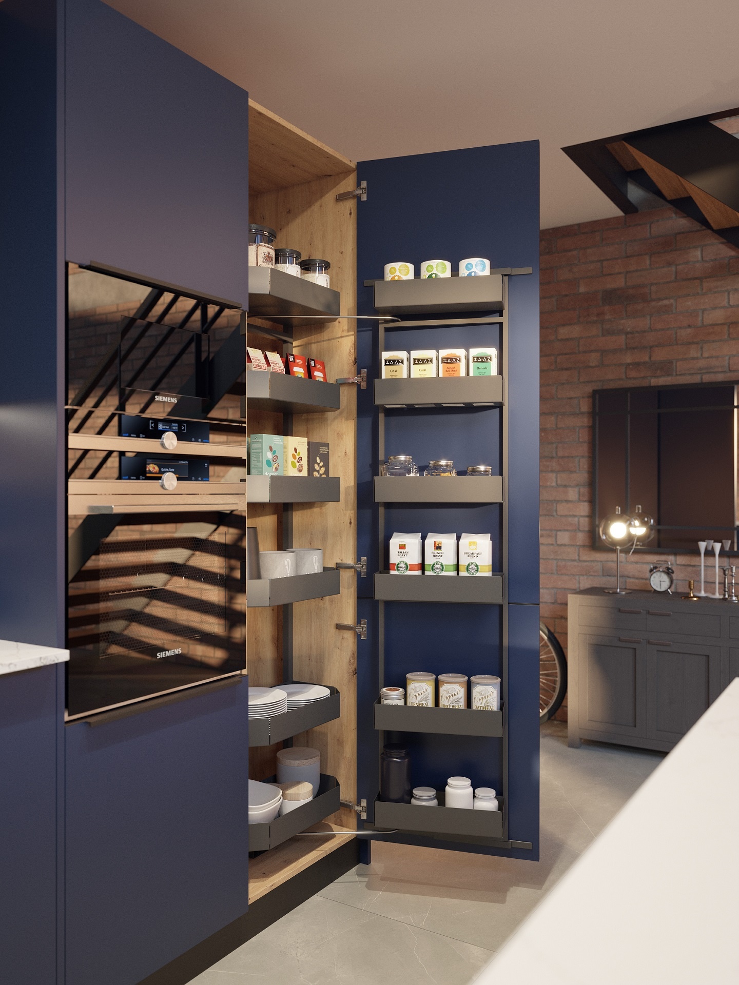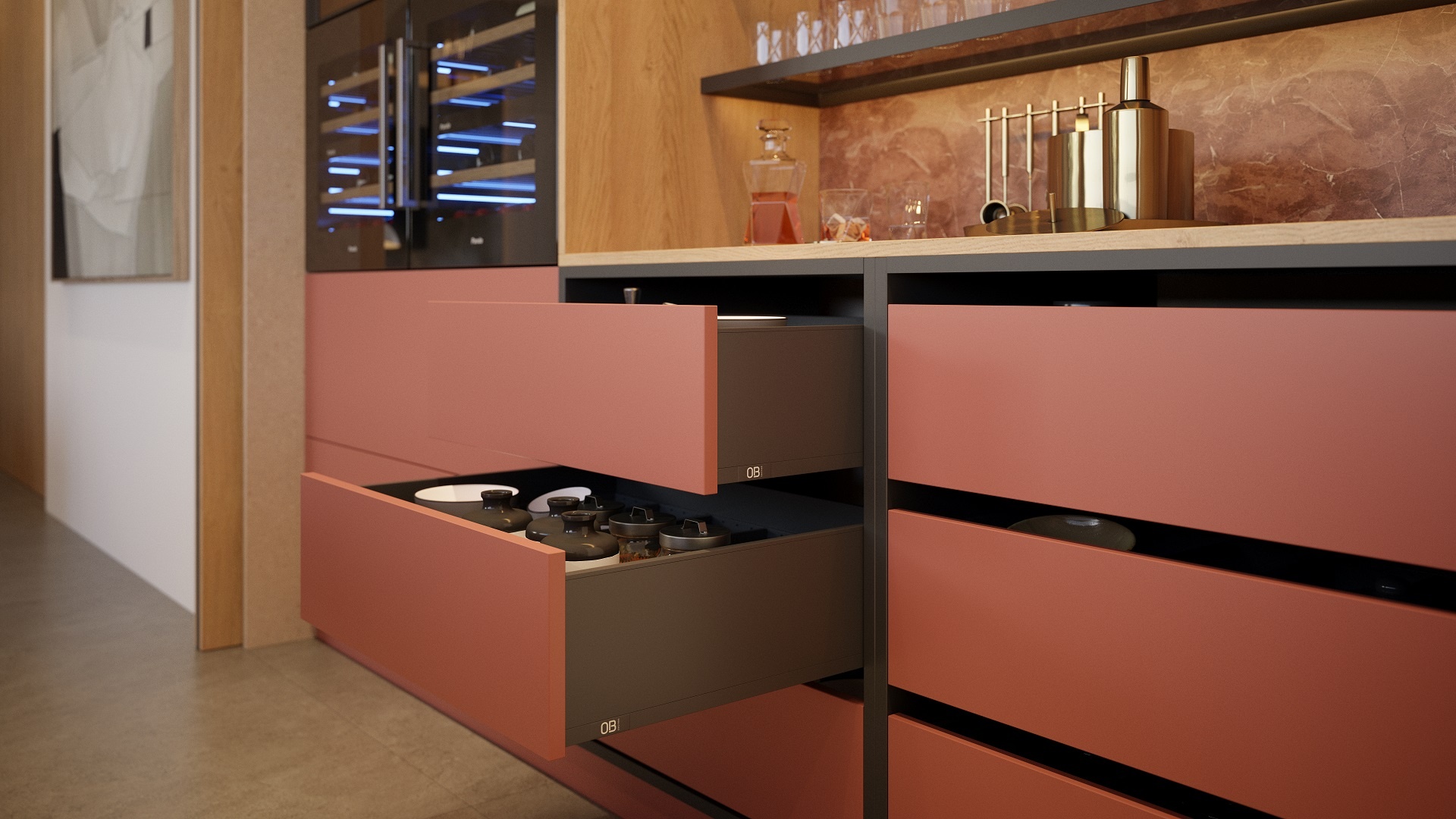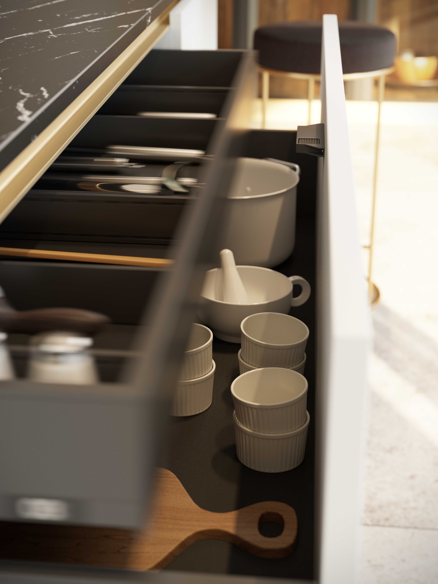 El equilibrio entre lo práctico y lo estético redefine la forma de habitar la cocina. Nuestras soluciones de almacenaje son nuestras aliadas del orden y la comodidad, aprovechan cada rincón, facilitan el acceso y se integran de forma natural en cualquier diseño. Interpretan el ritmo de quien habita el espacio y lo transforman. Tecnología que se adapta al espacio. Diseño que se adapta a ti.