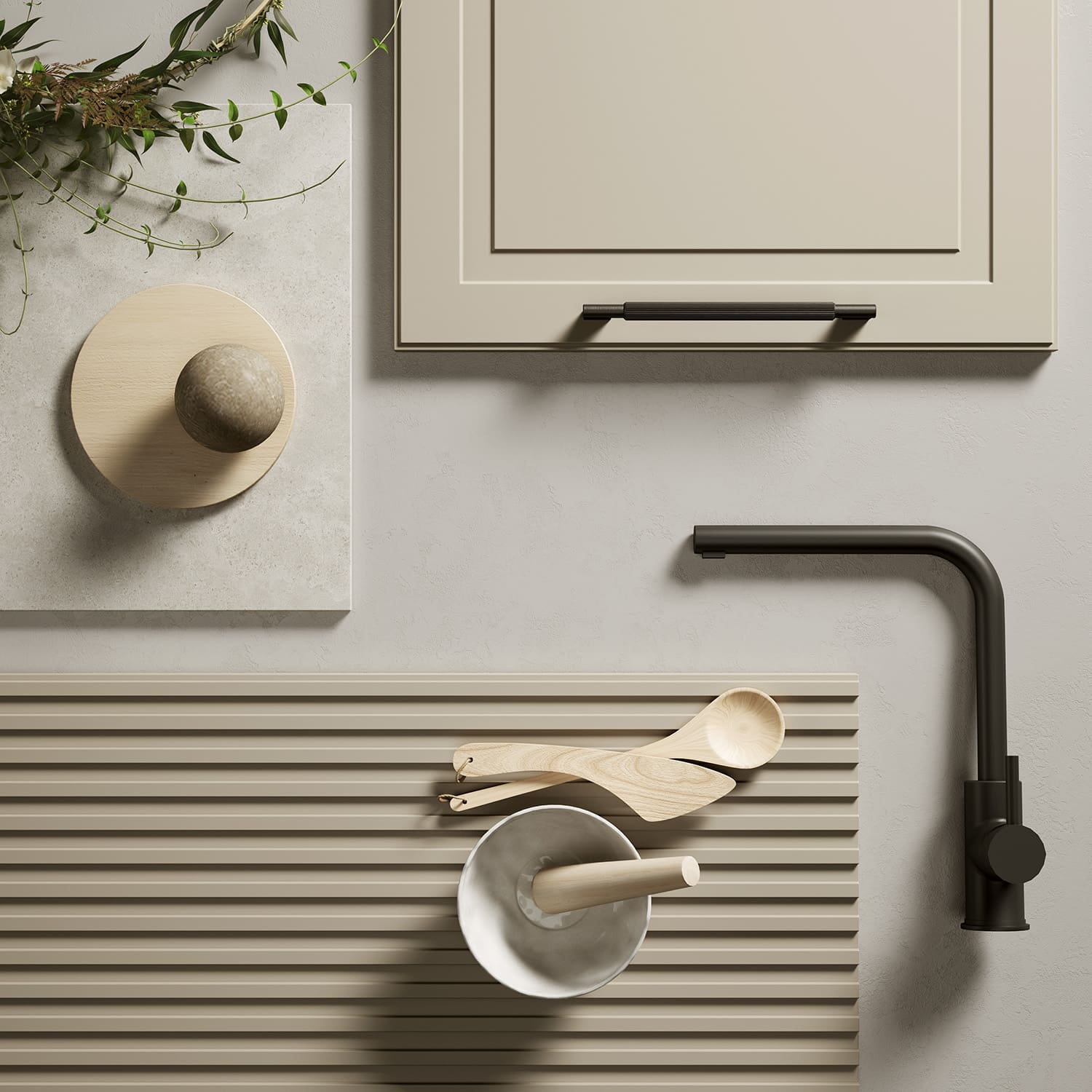 Es una cocina que se integra con naturalidad en el hogar, acompañando la vida diaria con una belleza atemporal.